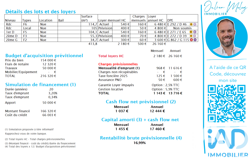 Loyer annuel prévisionnel : 26 160 €