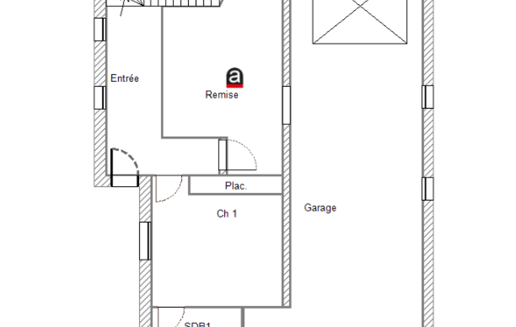 L’agencement actuel permet d’envisager deux espaces de vie distincts. Le rez-de-chaussée s’organise autour d’un hall d’entrée distribuant une chambre avec salle d’eau, un cellier ainsi qu’un vaste garage, facilement aménageable en surface habitable complémentaire selon les besoins.