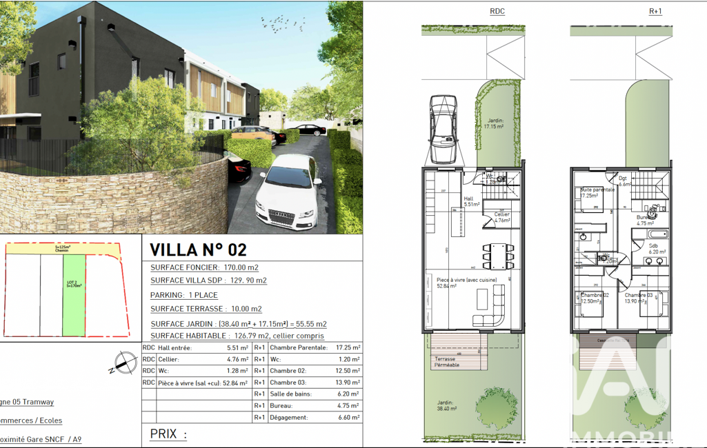 - Superficie terrain : 170 m²