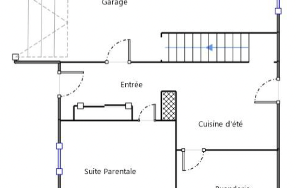 entrée avec rangements, une chambre avec douche et point d’eau, WC, buanderie, cuisine d’été, le tout pouvant faire office de logement indépendant ou d'espace de vie pour un membre de la famille. Un grand garage permet de stationner et d'offrir un espace de stockage complémentaire.