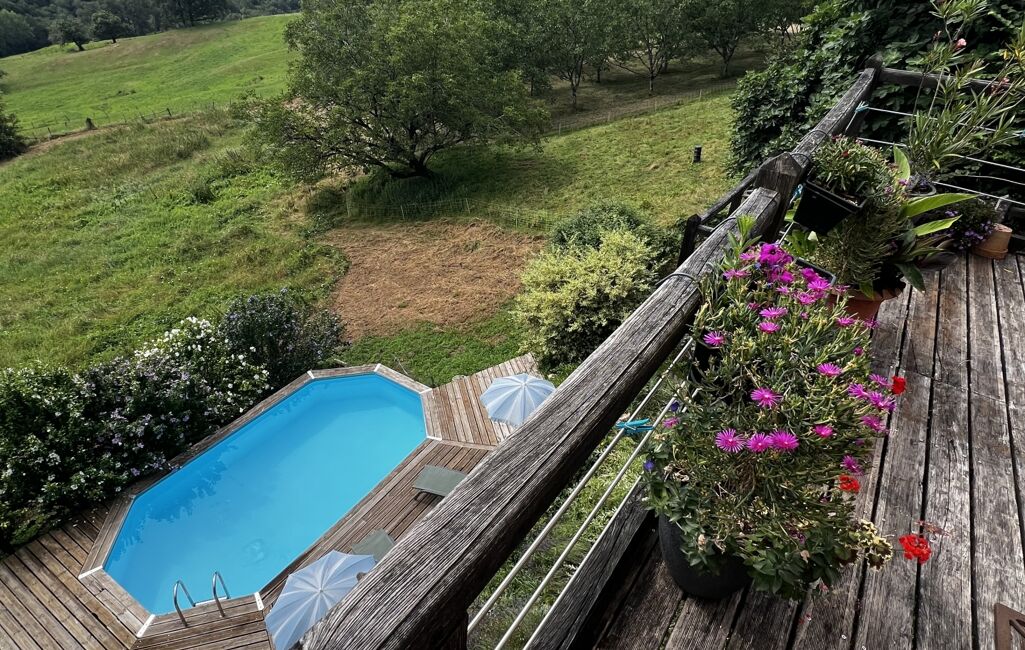 Deux terrasses, l’une exposée plein sud, l’autre à l’est, surplombent la piscine et la vallée, offrant un cadre idéal pour profiter pleinement des journées ensoleillées.