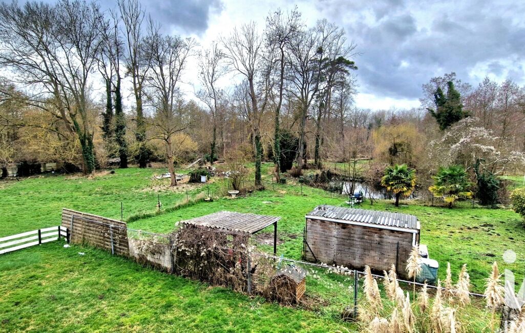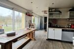 Au premier niveau : un espace de vie lumineux comprenant une cuisine équipée, un coin salle à manger donnant accès direct sur une belle terrasse avec vue sur le parc et la Juine, une salle de bains avec WC et une chambre.