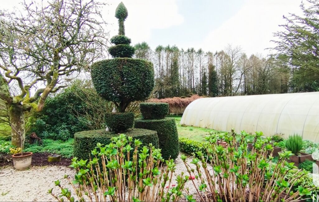 À l’extérieur, vous profiterez d’un magnifique terrain de 3930 m² avec un jardin paysagé et parfaitement entretenu, agrémenté de trois serres, un véritable atout pour les passionnés de jardinage ou les amoureux de nature.