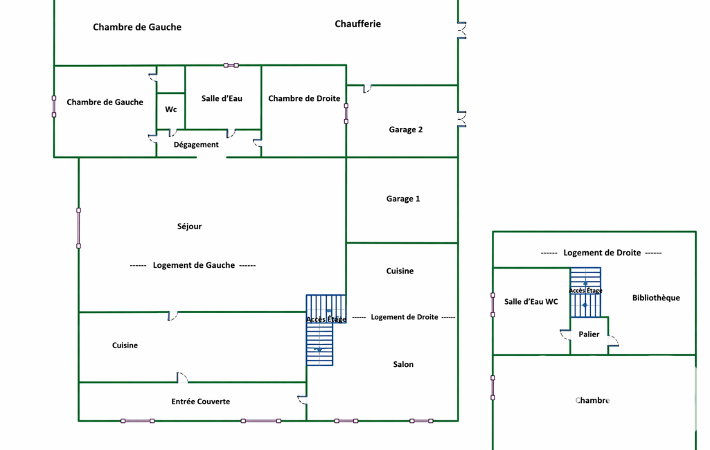 Dans un environnement calme et préservé, découvrez cette maison divisée en deux habitations reliées par la véranda. La première offre un spacieux salon avec une magnifique bibliothèque, un coin cuisine, L' étage est entièrement dédié à un espace parental avec chambre, salle de douche avec double WC et une bibliothèque pouvant faire office de dressing. La seconde, de plain-pied, propose un salon avec cheminée, une cuisine, deux chambres, une salle de douche et un WC séparé.