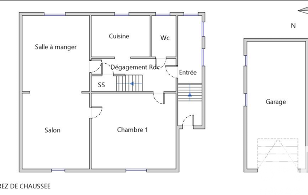 Le rez-de-chaussée est agencé comme suit : un sas d'entrée en veranda permettant d'entrer dans la maison, un wc séparé, une cuisine linéaire, un salon, une salle à manger donnant accès à la terrasse et une chambre ou bureau complète cet espace ,