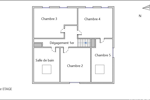 Le 1er étage est agencé comme suit : un palier avec 2 espaces de rangement, une chambre avec accès au balcon, une salle de bains et 3 autres chambres (dont 1 en enfilade) ,