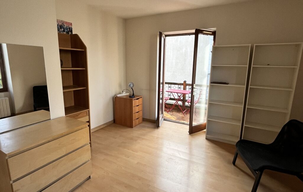 Un grand dégagement, une spacieuse chambre, une salle de bains avec wc et un bureau ou petite chambre.