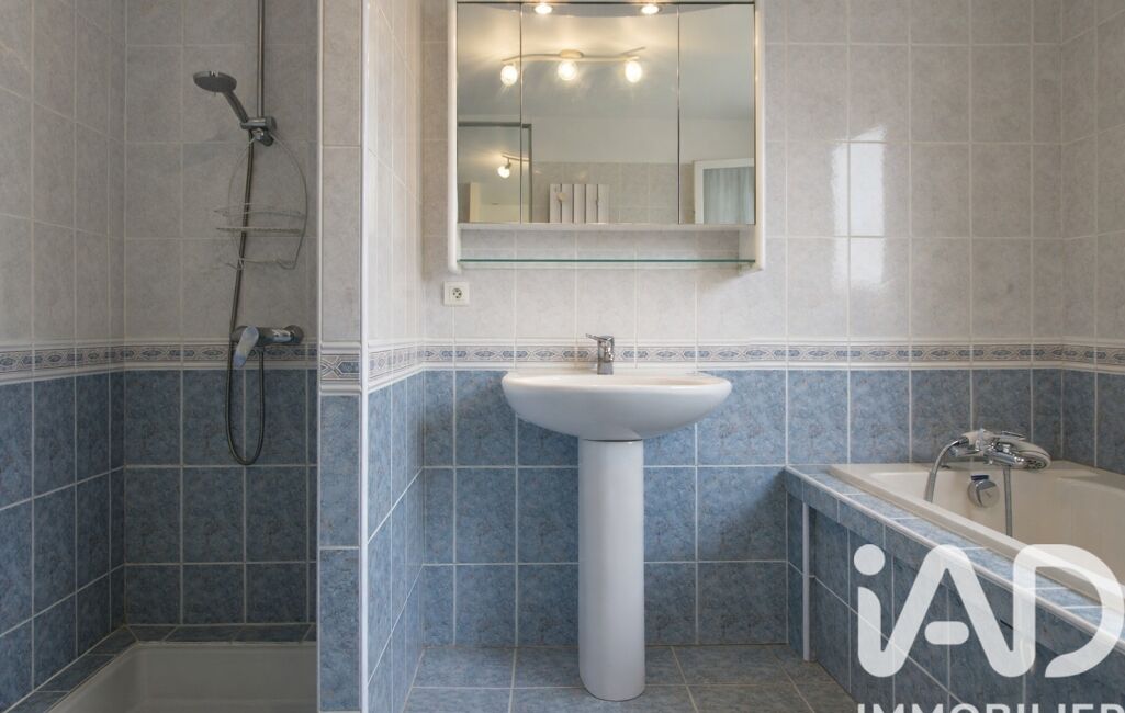 -Une grande salle de bain lumineuse avec douche et baignoire et sèche serviette