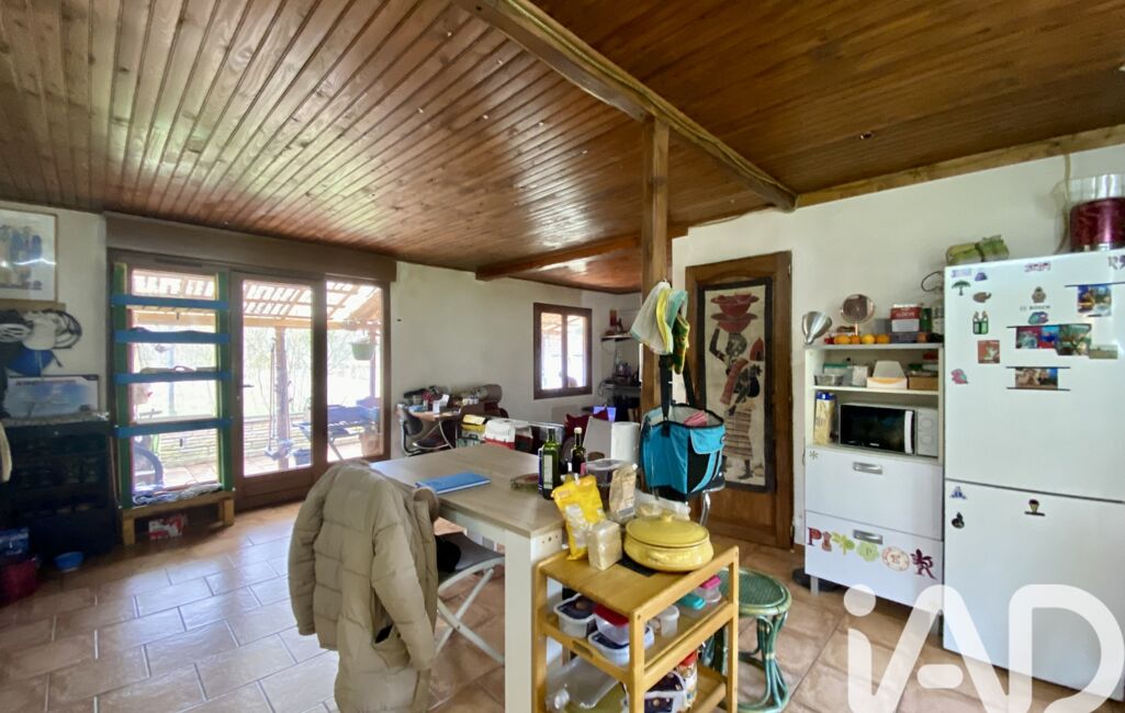 iad France - Laurence Cabrera vous propose: EN EXCLUSIVITE, pour les amoureux de la nature, Maison ossature bois sur vide sanitaire, séjour avec cheminée insert, cuisine ouverte sur le séjour, wc, salle d'eau, 2 petites chambres, garage indépendant, le tout sur environ 4232m2 de terrain.