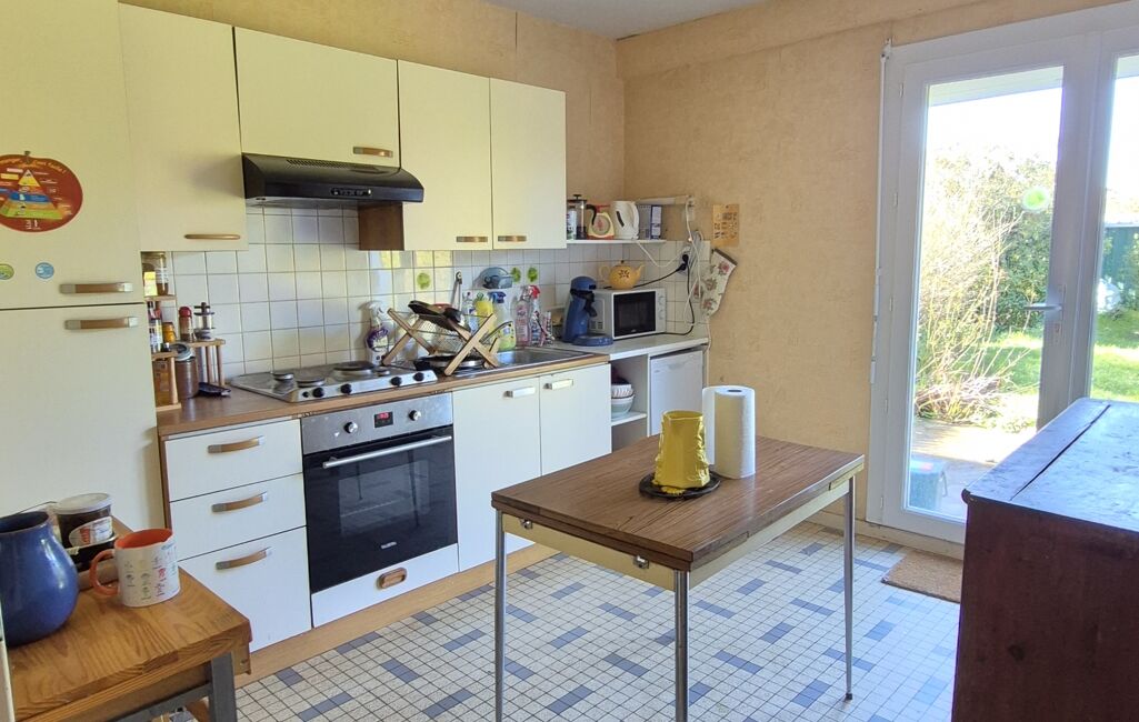 iad France - Elodie Audureau vous propose: Venez découvrir cette charmante maison familiale comprenant, un hall d'entrée desservant un salon séjour lumineux, une cuisine avec un accès au jardin, un garage et une chaufferie. WC séparé.