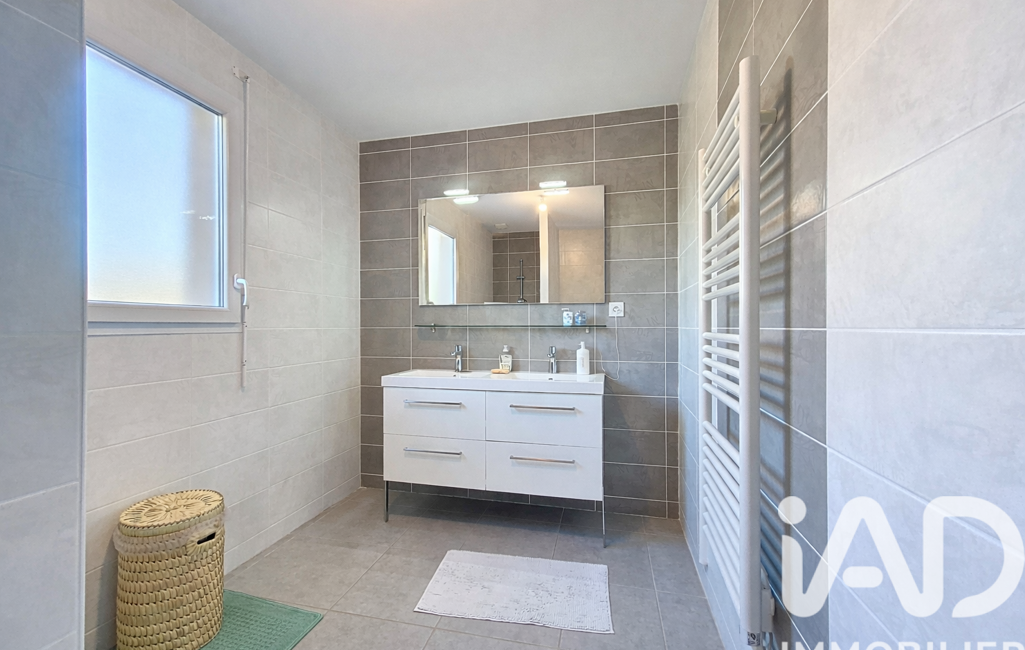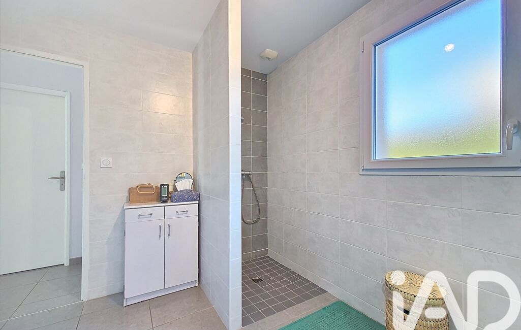 La partie nuit, distincte, se compose de trois chambres avec placards (entre 10 et 11 m²), d’une belle salle d’eau de 7 m² avec douche à l’italienne, double vasque et fenêtre, ainsi que d’un WC indépendant avec fenêtre. Un cellier-buanderie complète l’ensemble et donne accès à un grand garage double d'environ 30 m² avec 2 portes motorisées, fenêtres et mezzanine de rangement.