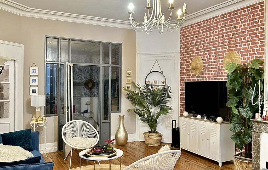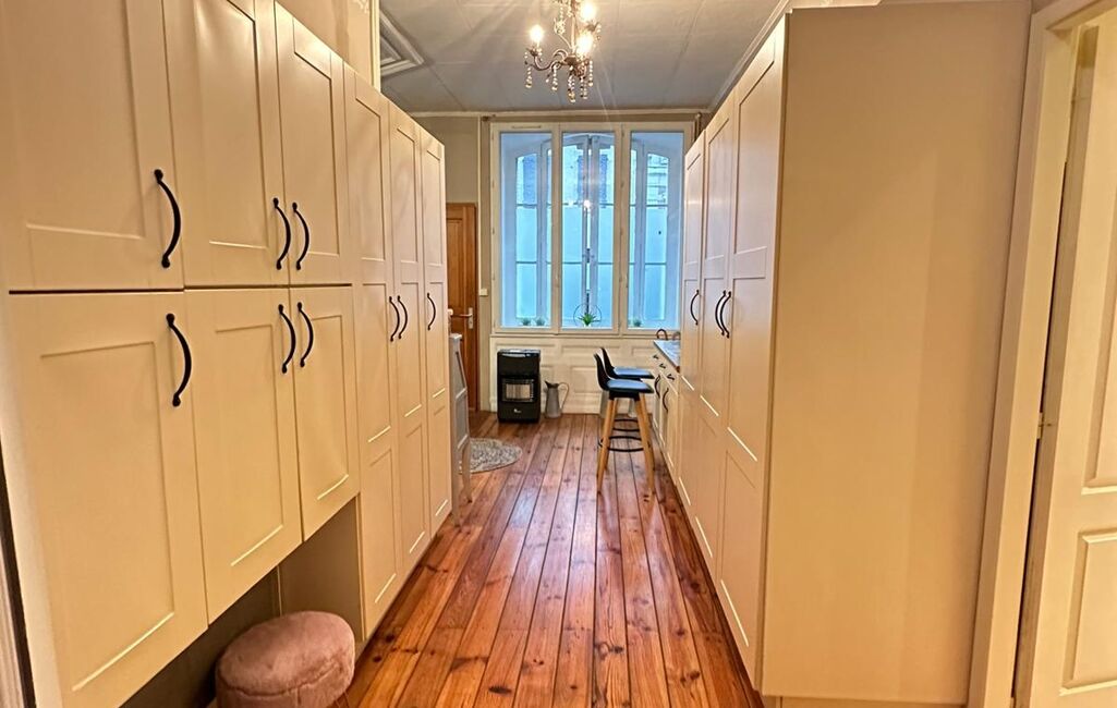 iad France - Corinne Calasnives vous propose: De découvrir cet appartement entièrement rénové de 100 m2 situé au rez de chaussée d’une petite copropriété en centre ville de Pau. De style Haussmannien avec une belle hauteur sous plafond et des planchers d’origine, on trouve une entrée indépendante de la copropriété qui dessert la grande pièce de vie avec des espaces bien définis, un salon salle à manger, une belle cuisine ouverte aménagée et équipée, des placards et rangements, trois chambres dont une de plus de 15 m2 environ et une salle de bains avec WC. Une cave indépendante en sous sol vient compléter ce bien. Je vous attend pour une visite.