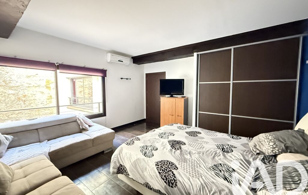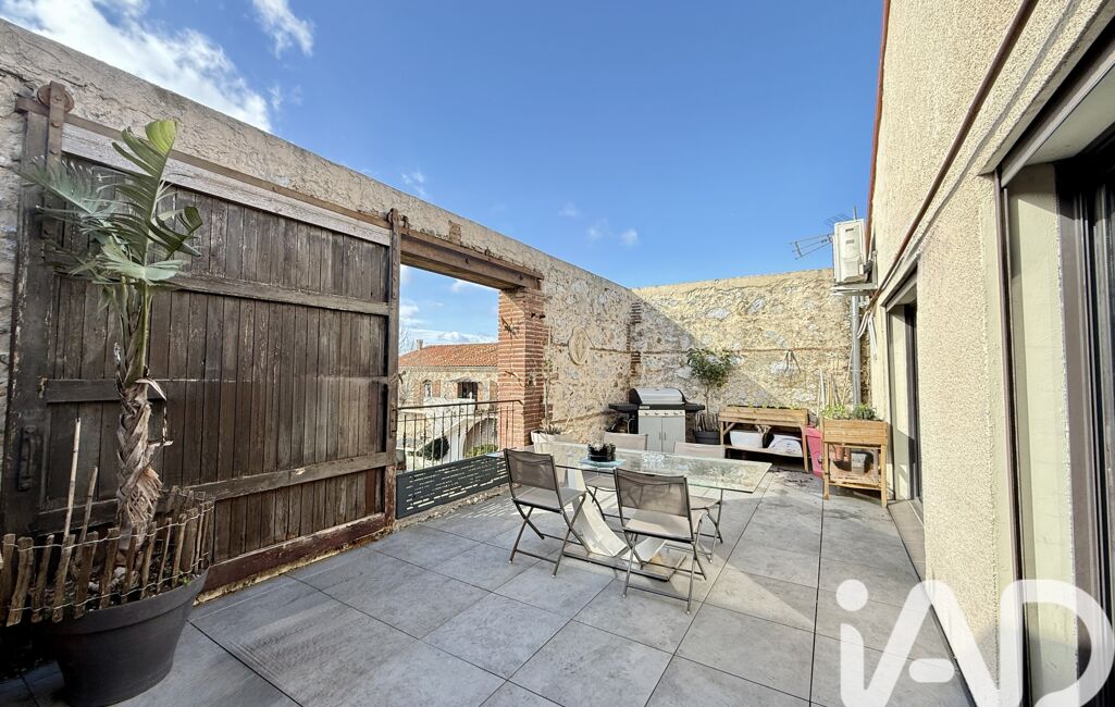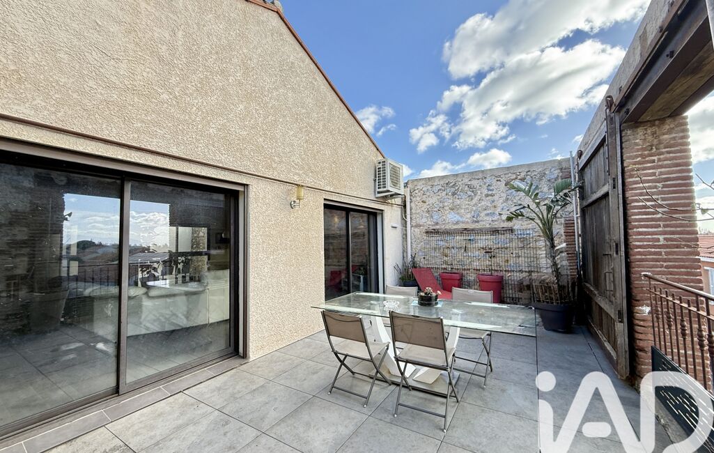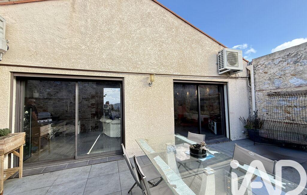 Dans son prolongement, une terrasse d’environ 25 m² permet de profiter pleinement d’une vue dégagée sur les Albères et la chaîne des Pyrénées.