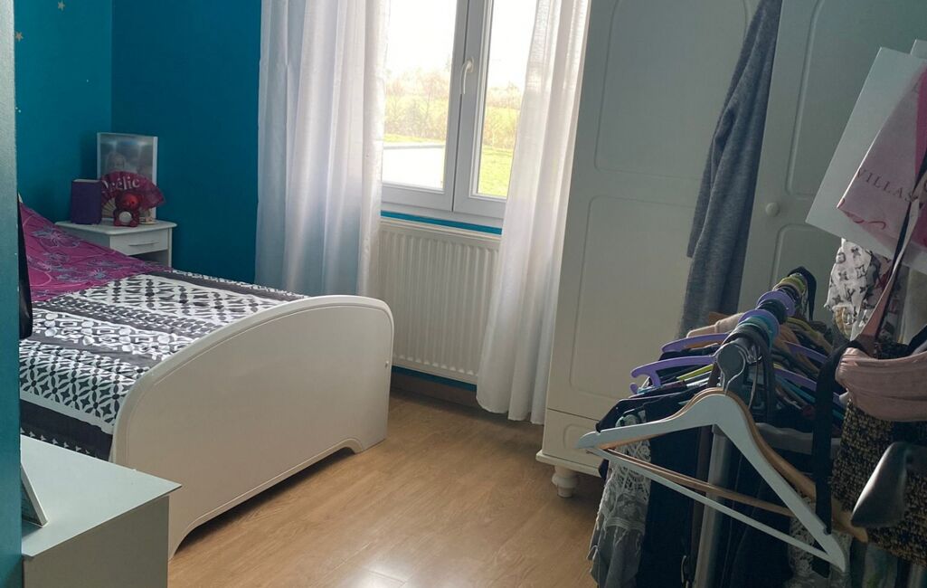 La maison bénéficie d’un environnement contrasté : d’un côté un accès rapide par la route, de l’autre une vue dégagée sur les champs.