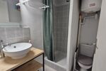 Une salle d eau avec toilette .