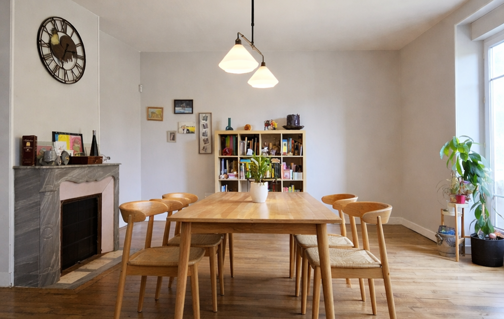 Les équipements tels que la fibre optique, le chauffage individuel et la cheminée avec insert assurent un confort optimal au quotidien.