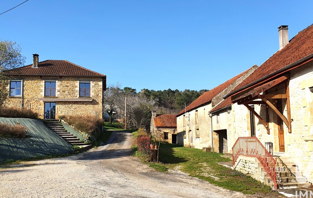 iad France - Brice Gilliers vous propose: Dans un environnement calme et verdoyant, à quelques kilomètres au Nord de Sarlat, sur la commune de Proissans, venez découvrir ce magnifique corps de ferme de 332 m² habitables environ, composé de 8 bâtiments, sur un terrain de plus de 8 hectares.