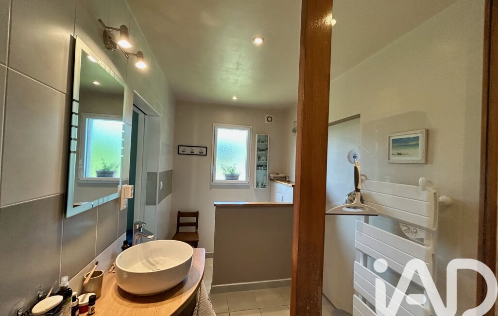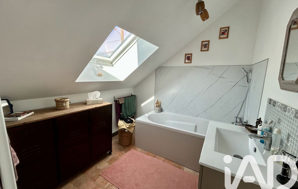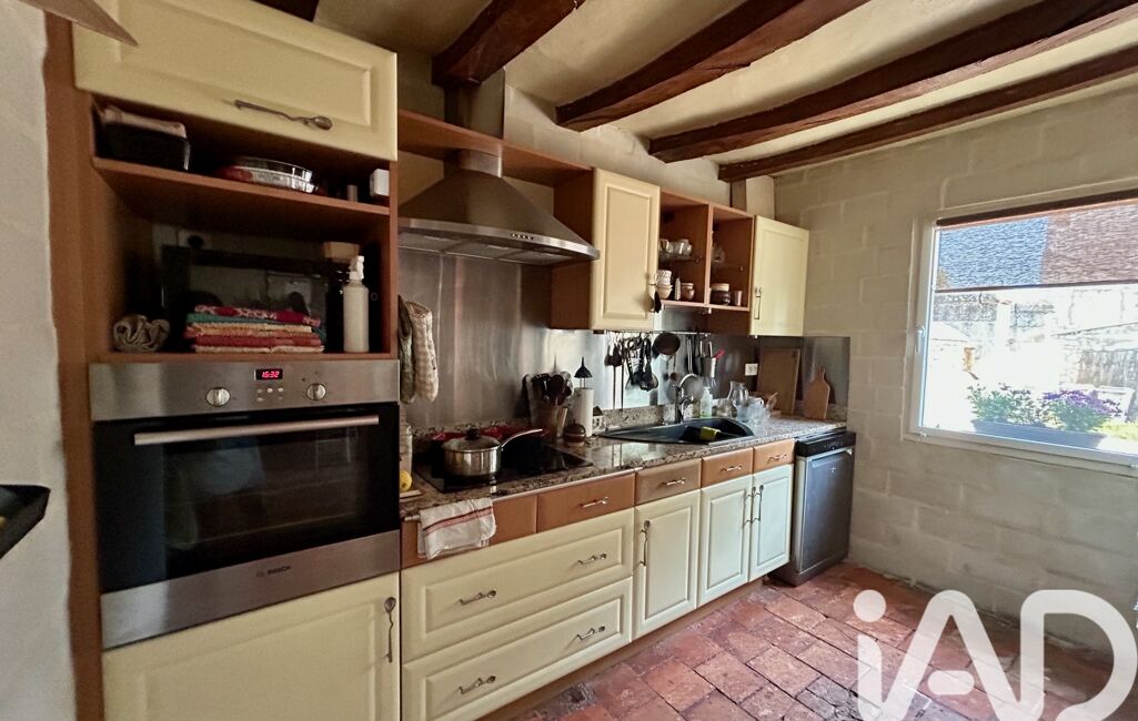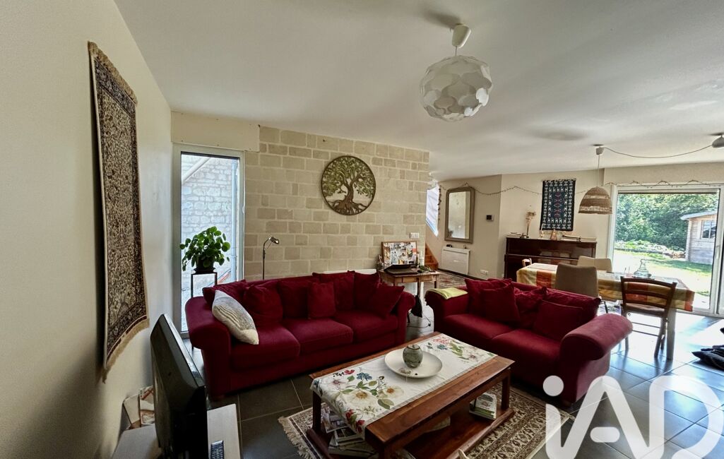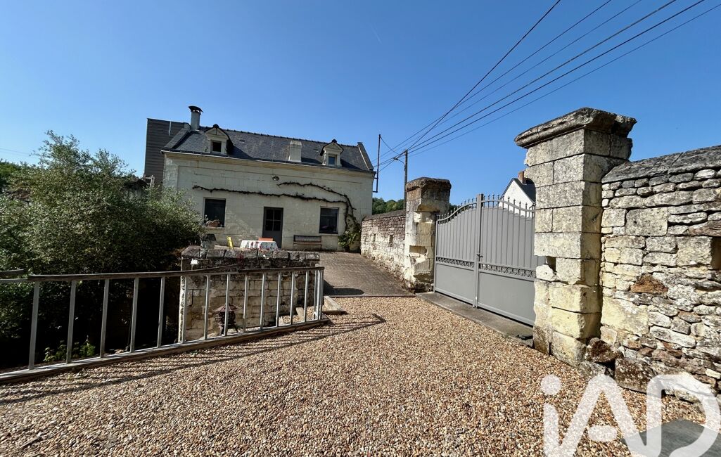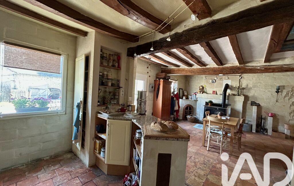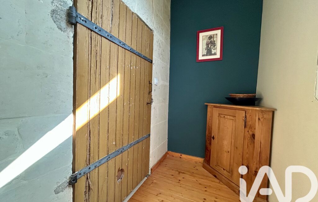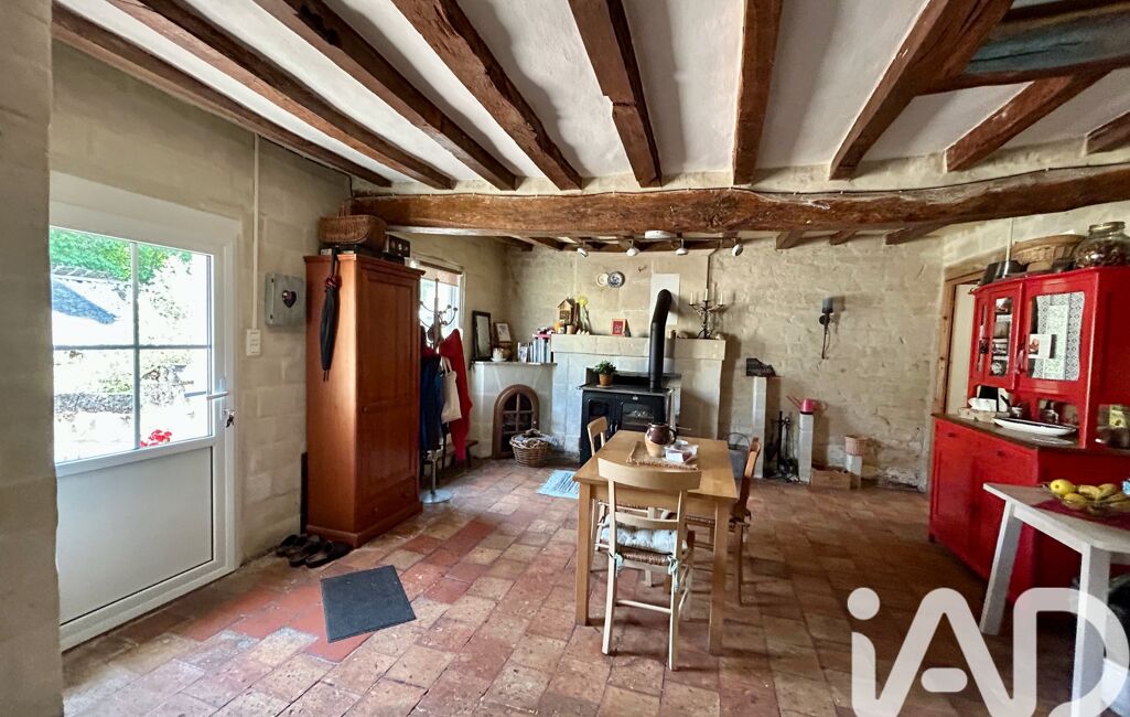 Maison en tuffeau avec extension en bois, cuisine aménagée et équipée avec poutres et tommettes, un salon/séjour lumineux avec poêle à bois, un espace nuit de plain-pied avec 2 chambres et une salle d'eau avec wc. À l'étage une suite parentale avec charpente apparente salle de bain et un espace pour un dressing.