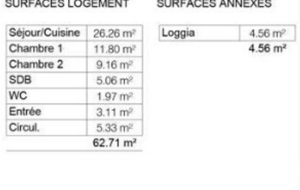• Surface habitable : 62 m²