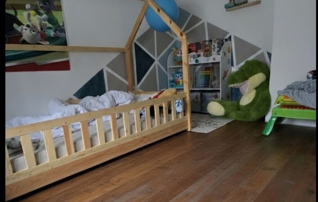 A l'étage, un appartement de 70m2, 2 chambres , cuisine équipée et comble à aménager, loué 650e DPE D.