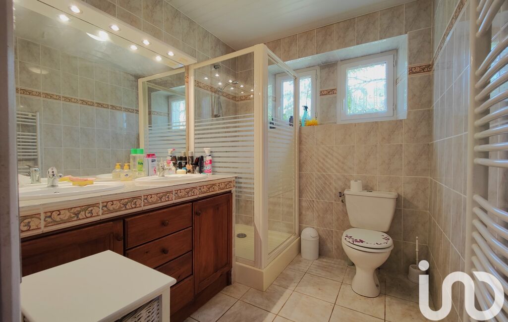 . La salle d’eau est composée d’un WC, d’une douche et d’un évier à double vasque.