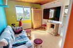 Une GRANDE PIÈCE DE VIE avec CUISINE OUVERTE sur le séjour, une SALLE DE BAINS et un WC indépendant.