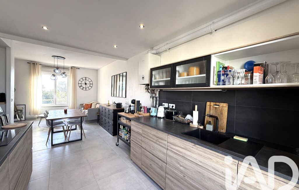 La pièce de vie traversante associe salon, salle à manger et cuisine ouverte, récemment rénovée en 2023, offrant un espace convivial idéal pour partager des moments en famille ou entre amis.