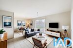 La baie vitrée équipée d'un volet roulant électrique apporte une belle luminosité et donne accès directe à la terrasse en bois de 30 m², idéale pour les repas et les moments de détente.