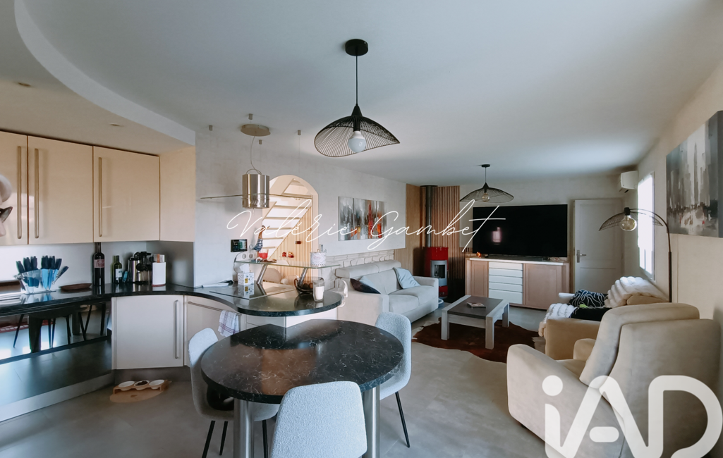 iad France - Valérie Gambet vous propose: À seulement 2 mn à pied de la gare, découvrez cette maison familiale avec quatre chambres, mitoyenne uniquement par le garage, offrant confort, fonctionnalité et prestations modernes sur un terrain arboré de 390 m².