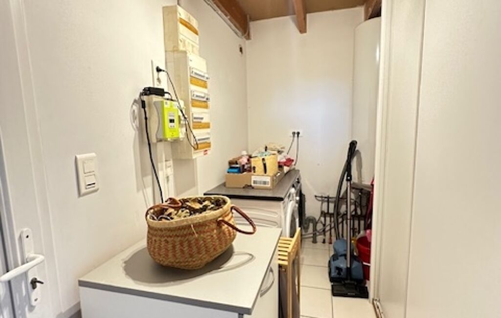 Une Cuisine aménagée et équipée ouverte sur le séjour, avec buanderie attenante pour plus de praticité au quotidien.