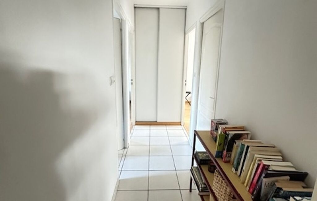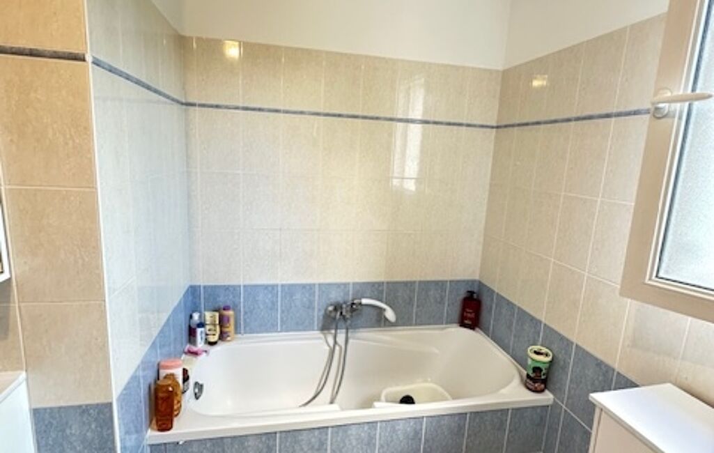 Un dégagement donne accès à trois chambres, dont deux avec placards intégrés, une grande salle de bain spacieuse avec douche + baignoire et un WC séparé.
