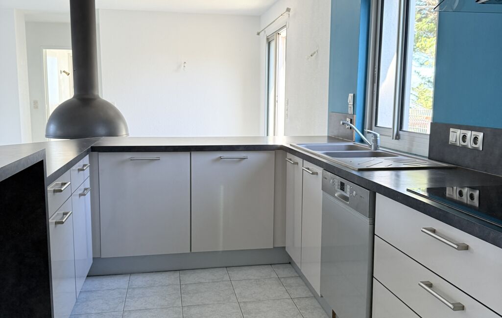 La maison propose une pièce de vie spacieuse avec cuisine ouverte équipée.