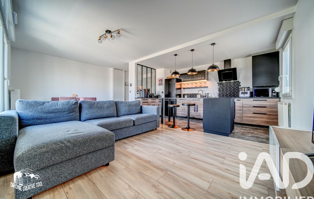 Il se compose d’une entrée avec rangements et verrière, apportant luminosité et cachet, ouvrant sur une pièce de vie d’environ 30 m² avec cuisine équipée contemporaine et îlot central.