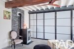 Une entrée avec placards, dessert une cuisine aménagée et équipée ainsi qu'un vaste salon séjour de 39m2 lumineux avec poêle à granulés, puis une chambre parentale de 19m2, une 2eme chambre avec mezzanine (pouvant servir de bureau chambre d'amis...) et une salle bains avec douche et baignoire balnéo et wc séparés.