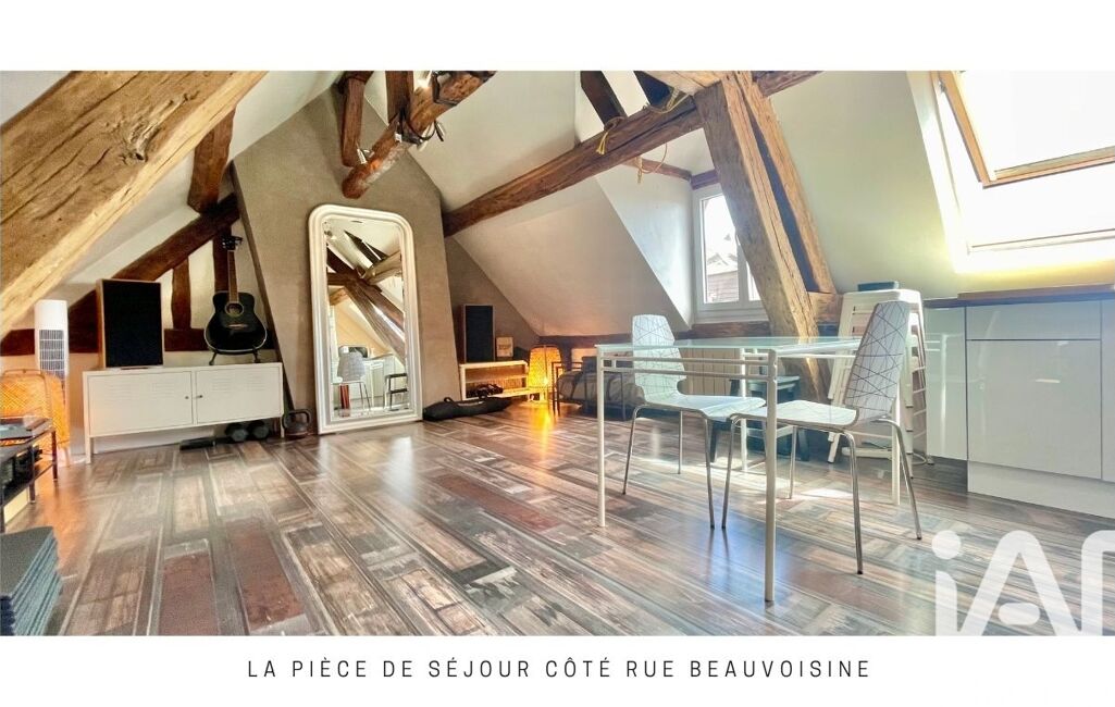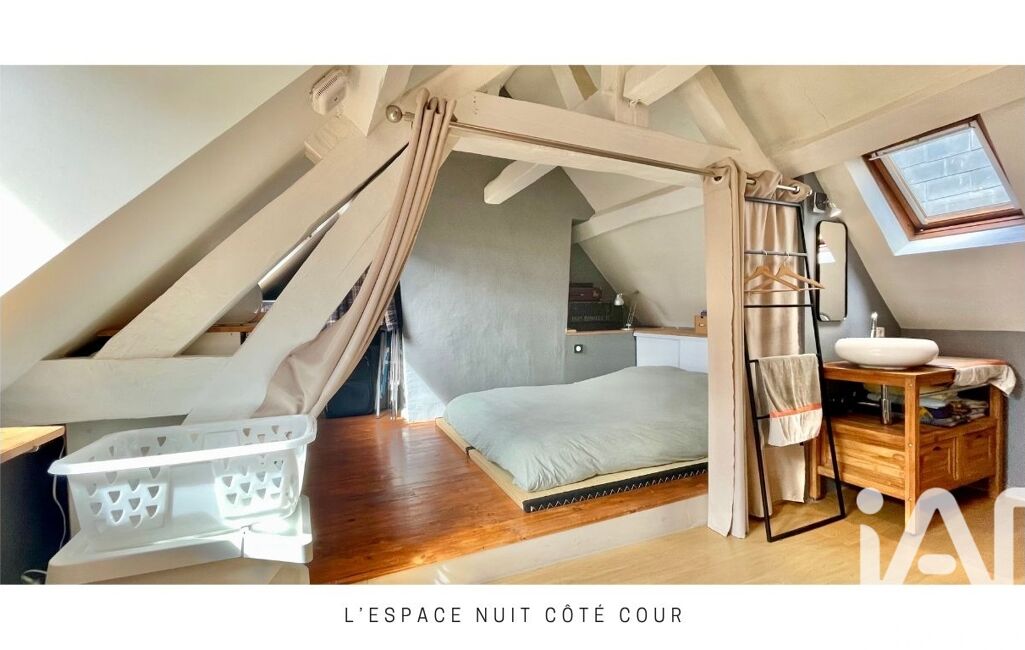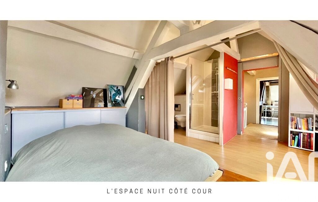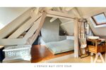 Aujourd’hui configuré en T2 d’environ 45 m² habitables (60 m² au sol, 33 m² carrez), cet appartement offre une pièce de vie lumineuse avec cuisine ouverte, une chambre côté cour, un espace douche d’eau côté chambre et des espaces optimisés sous rampants.