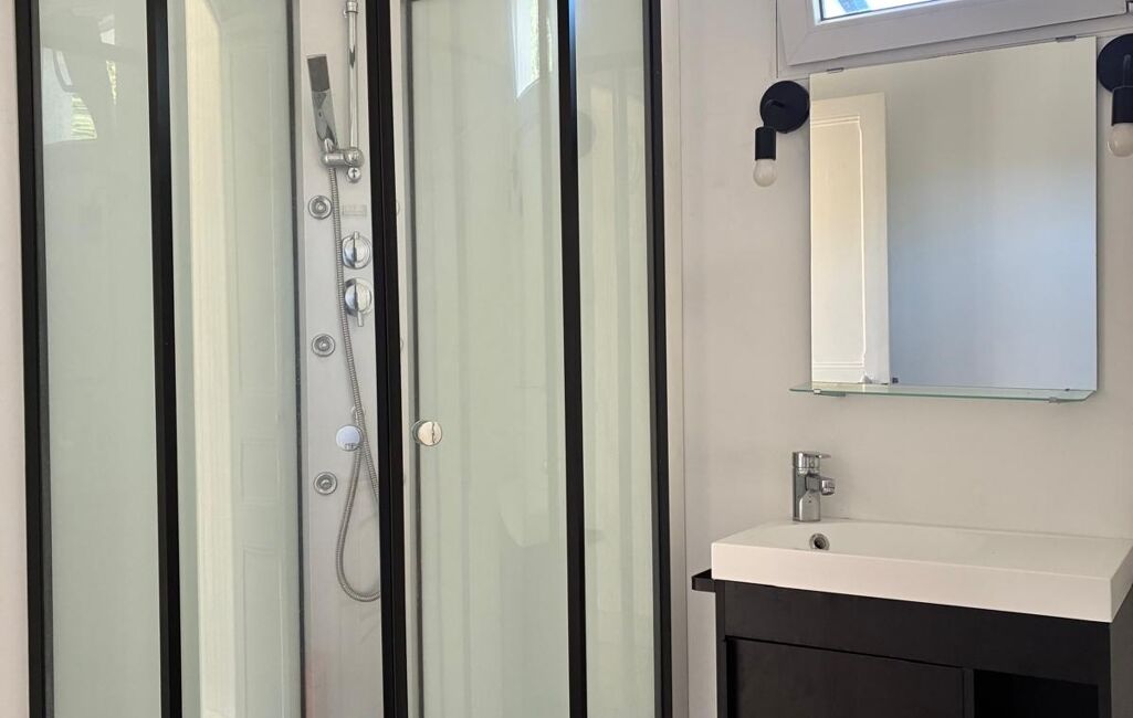 À l’étage, vous trouverez deux chambres de respectivement 14 et 12 m², ainsi qu’un coin douche sur le palier.