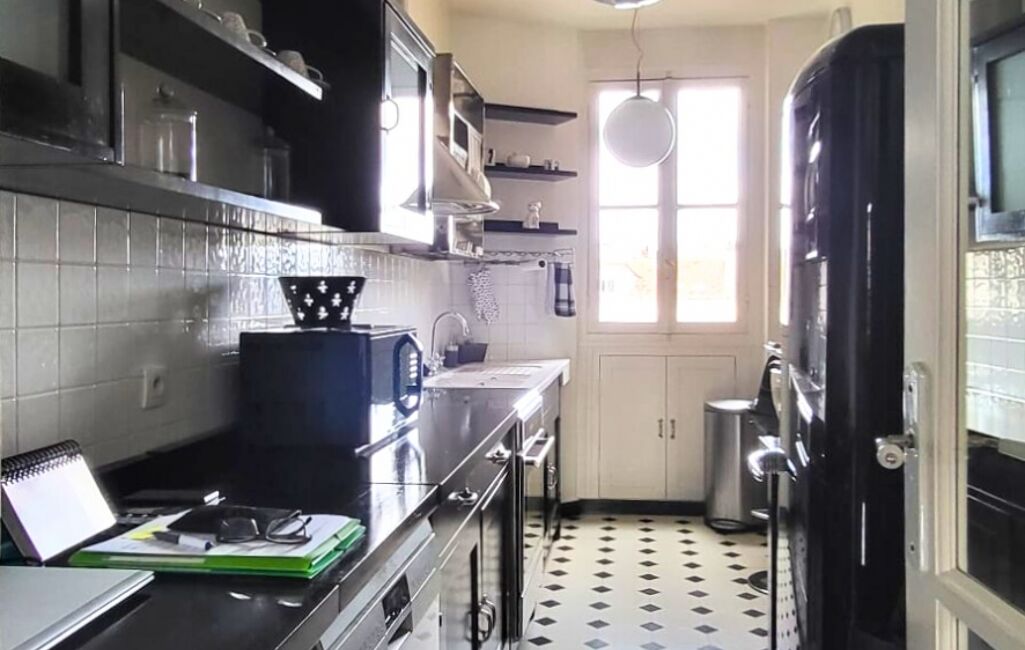 Au 4ᵉ étage sur 6 avec ascenseur d’un bel immeuble ancien de 1930, appartement traversant de 3/4 pièces d’une superficie de 105,73 m², lumineux et parfaitement agencé.