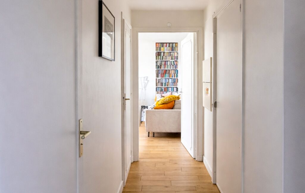 Une entrée confortable permettant l’aménagement de rangements (étagères, porte-manteaux)