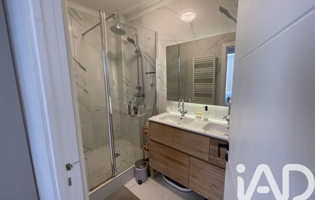 Deux chambres sont séparées par une salle d’eau avec douche à l’italienne, meuble en bois 2 vasques de très belle qualité.
