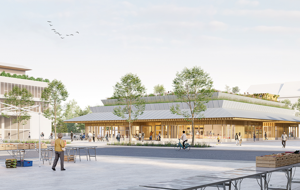 Projets d'équipements en cours tels que la Hall gourmande sur la nouvelle place centrale du marché offrant commerces et restaurant ainsi que le marché deux fois par semaine et la médiathèque en bords de marne avec Roof top végétalisé.