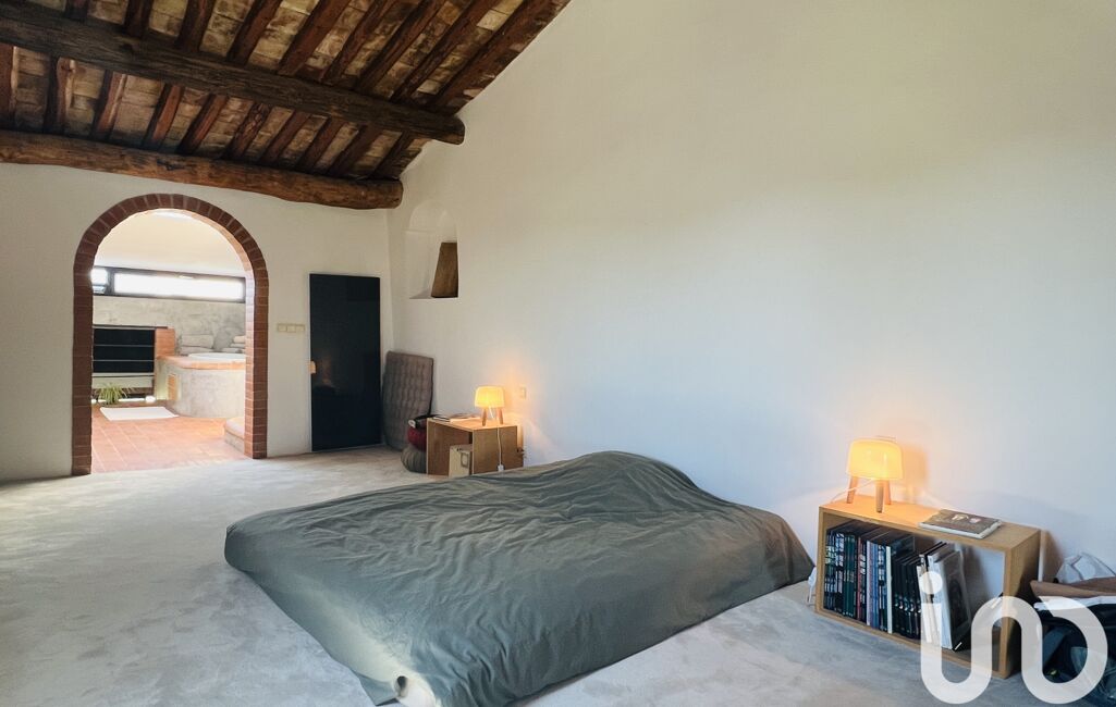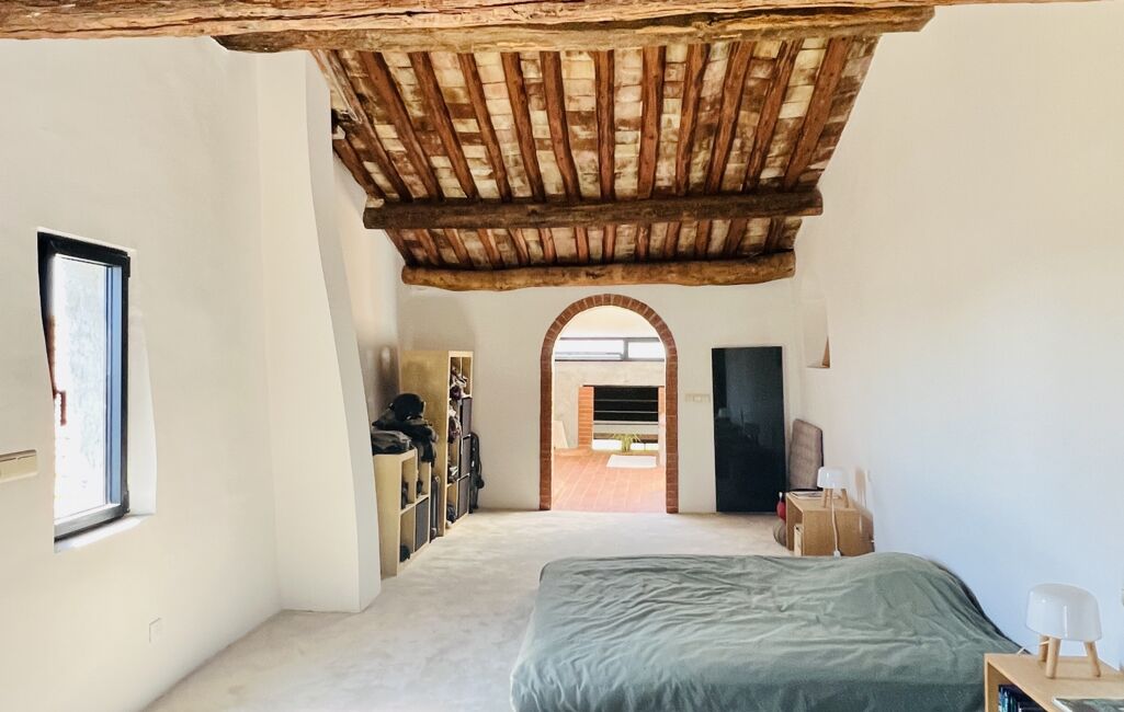Au 2nd niveau, 1 suite parentale de 40 m² environ avec une belle hauteur sous plafond de 3 mètres, on découvre poutres et mallons de couvert qui lui donnent tout le charme de la Provence. La moquette réalisée sur mesure épouse confortablement les courbures de la pièce.