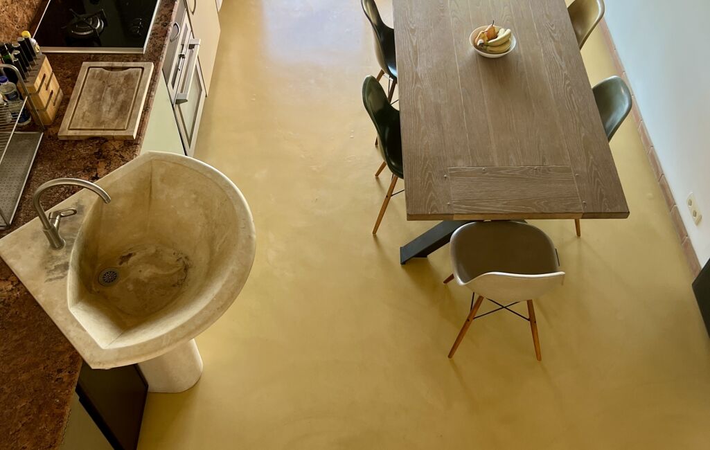 Cette pièce très agréable en été, a pour votre confort un chauffage au sol l'hiver. Le sol est en béton ciré sur l'ensemble.