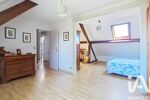 A l’étage, un palier dessert deux chambres avec la possibilité d’en créer une troisième, ainsi que de nombreux rangements grâce aux placards sous pente et un dressing. Une salle de bains complète ce niveau et bénéficie d’un WC séparé, très pratique au quotidien.