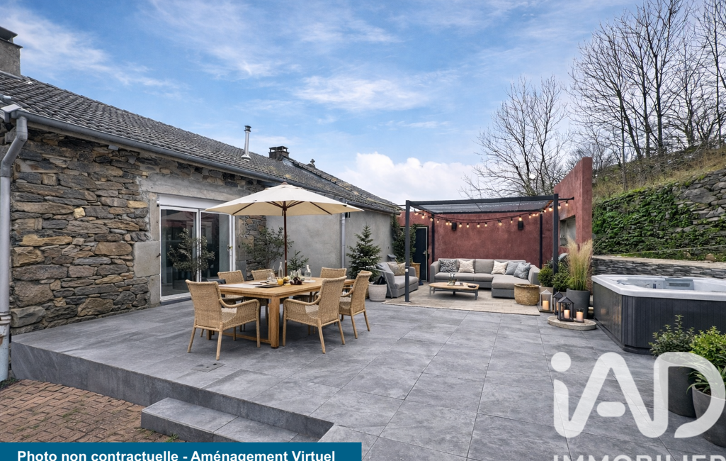 iad France - Aurore Souef vous propose: EXCLUSIVITÉ - Saint-Hostien (43) - Ferme en pierre (1859) entièrement rénovée (2023-2025) - 188 m² - 2 logements indépendants - Terrasse de 85 m² - Garage de 30 m² - Terrain clos & piscinable de 7 430 m², exposé SUD - Vue dégagée sur le Meygal
