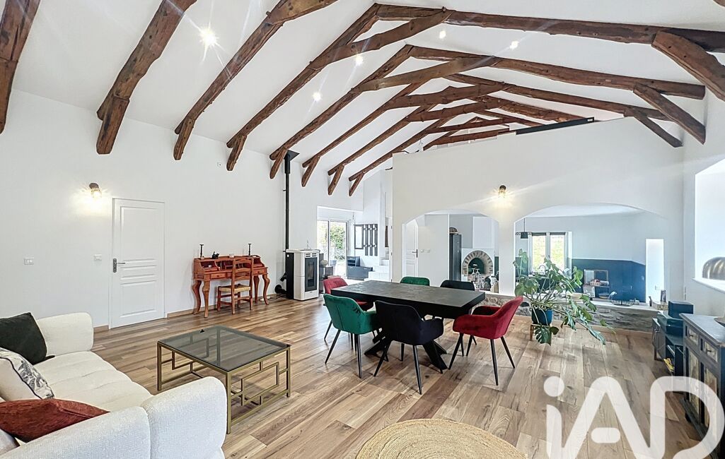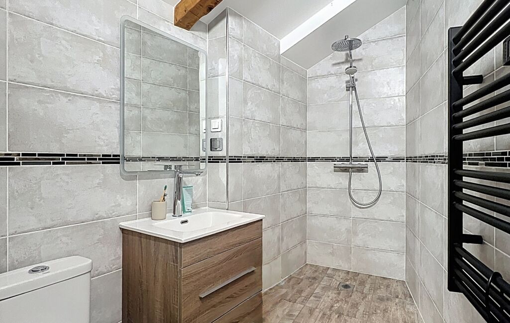 Aménagée dans l’ancienne grange, accessible de plain-pied par la terrasse carrelée d’env. 85 m² : l’entrée donne directement sur le spectaculaire séjour cathédrale d’env. 65 m² avec plancher chauffant, poêle à granulés et cheminée ainsi que la cuisine semi-ouverte équipée avec four à pain/pizza. La buanderie/cellier avec WC ainsi que la mezzanine mansardée d’env. 13 m² avec WC complètent la pièce de vie. 2 suites parentales (dressings + salles d’eau à l’italienne dont 1 avec WC) sous les combles à l’étage, ainsi qu’une 3ᵉ suite avec salle d’eau et WC au rez-de-chaussée au niveau du garage complètent ce logement. Chauffage central fioul complété par poêle à granulés et insert.