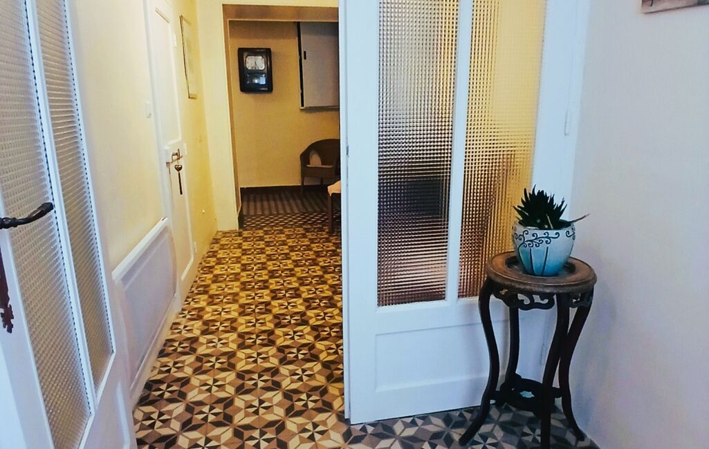 La maison a su conserver tout le charme de l’ancien avec ses tommettes, poutres apparentes et carreaux de ciment. Le poêle à bois renforce l’ambiance chaleureuse de l’ensemble.