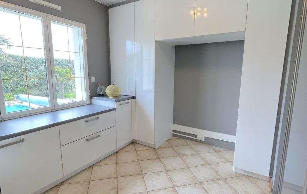 La cuisine, aménagée et équipée, est complétée par une arrière-cuisine / buanderie spacieuse, offrant un espace fonctionnel au quotidien.