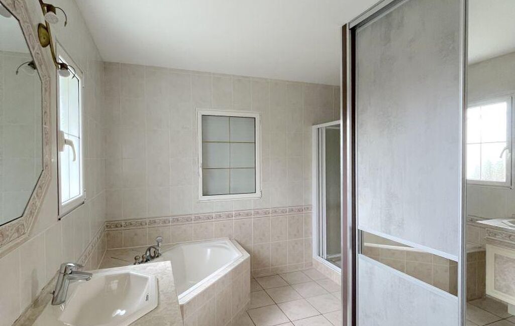 Un double garage avec porte motorisée et faux grenier vient parfaire l’ensemble.