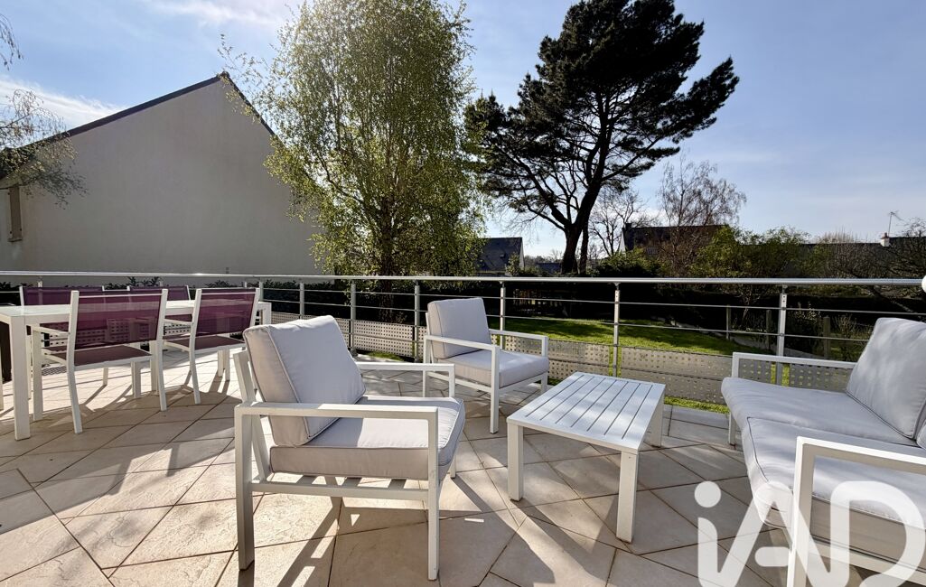 La terrasse en demi- niveau s'intègre naturellement sur une généreuse parcelle de 665m2, agrémentée d'un abris de jardin et d'un bûcher.