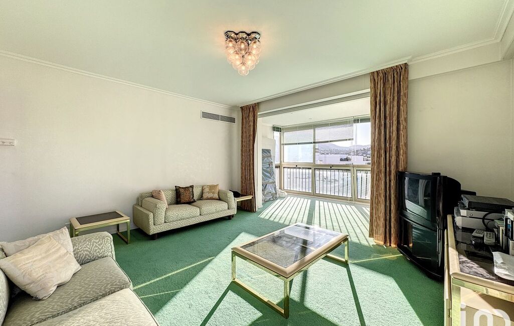 Séjour lumineux de 31 m² environ incluant une loggia avec vue sur le parc, ouvrant sur une belle terrasse de 14 m² environ avec vue mer panoramique